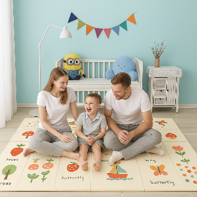 Mousse tapis bebe, double face et pliable style croquis, 200x180cm
