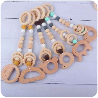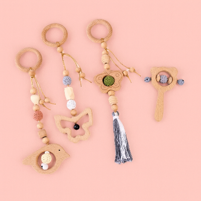 Jouet pour arche d'éveil | Naturel Sensoriel,4 pendentifs, Bois Coloré