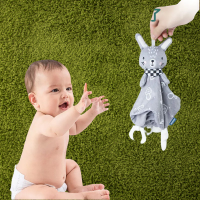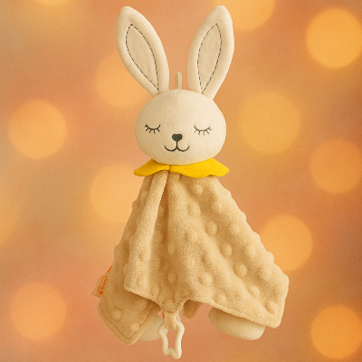 - Réconfort émotionnel : le doudou lapin devient un objet transitionnel qui aide bébé à gérer la séparation avec ses parents