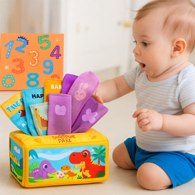 Cube motricité bébé - Boîte à mouchoirs en coton magique pour enfants