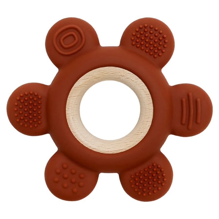 Notre anneau de dentition combine le meilleur des deux mondes : un anneau central en bois naturel non traité et des extensions en silicone alimentaire ultra-souple.
