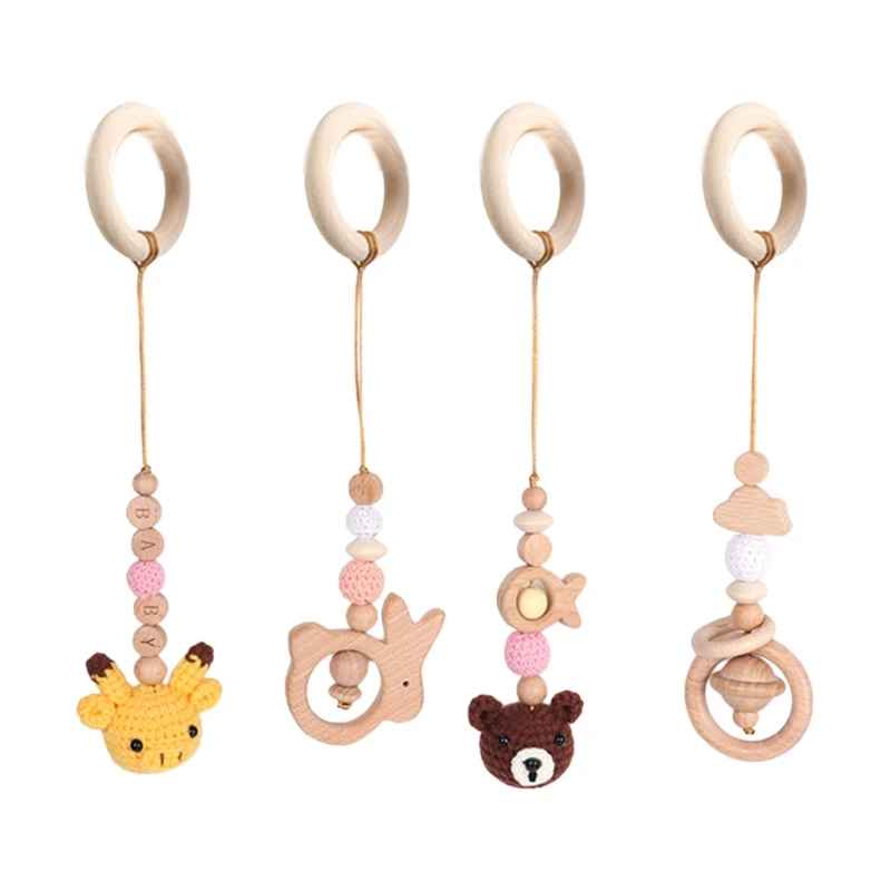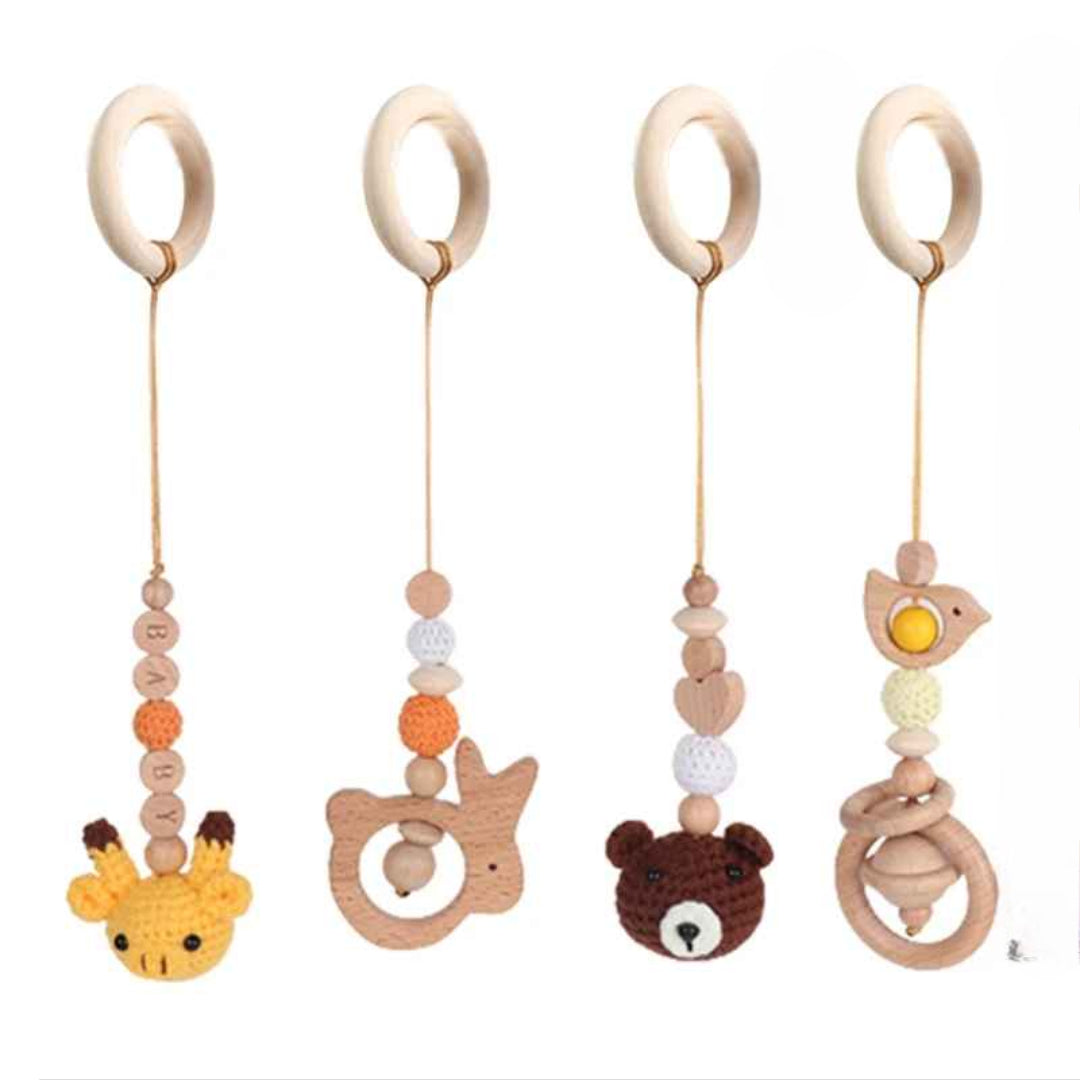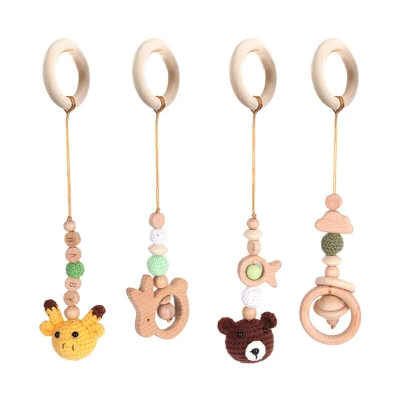 Jouet pour arche d'éveil | Naturel Sensoriel,4 pendentifs, trio animal